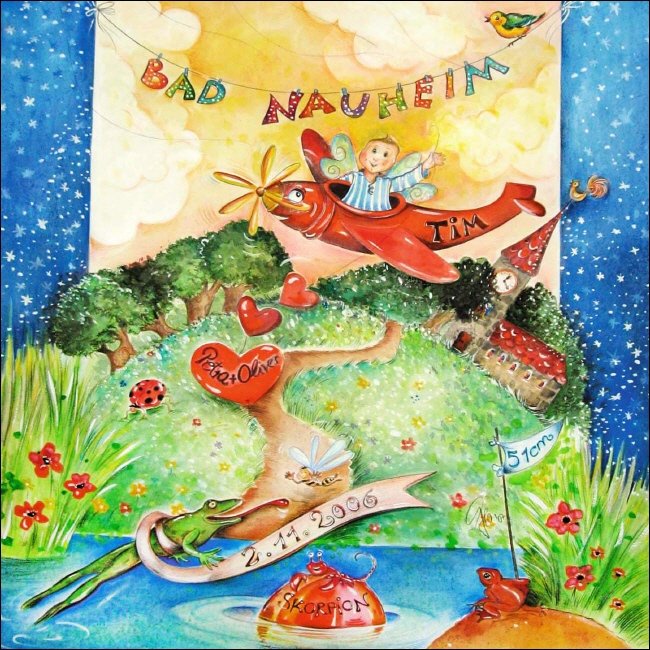 ob für Ihr eigenes Kind, ihr Patenkind, ihr Enkelkind oder das Kind einer lieben Arbeitskollegin. Jedes Bild ist ein von mir gestaltetes Original in aufwändiger Aquarell-Mischtechnik und wird speziell für den neuen Erdenbürger angefertigt.